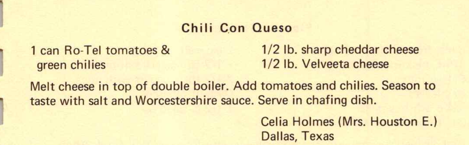 A cheesy dip with tomatoes and green chilies, served warm in a chafing dish.