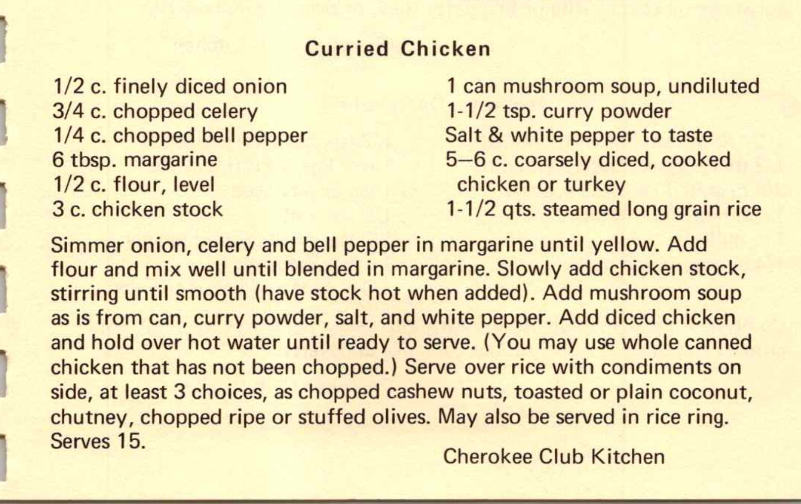 Add diced chicken and hold over hot water until ready to serve. (You may use whole canned chicken that has not been chopped.)
