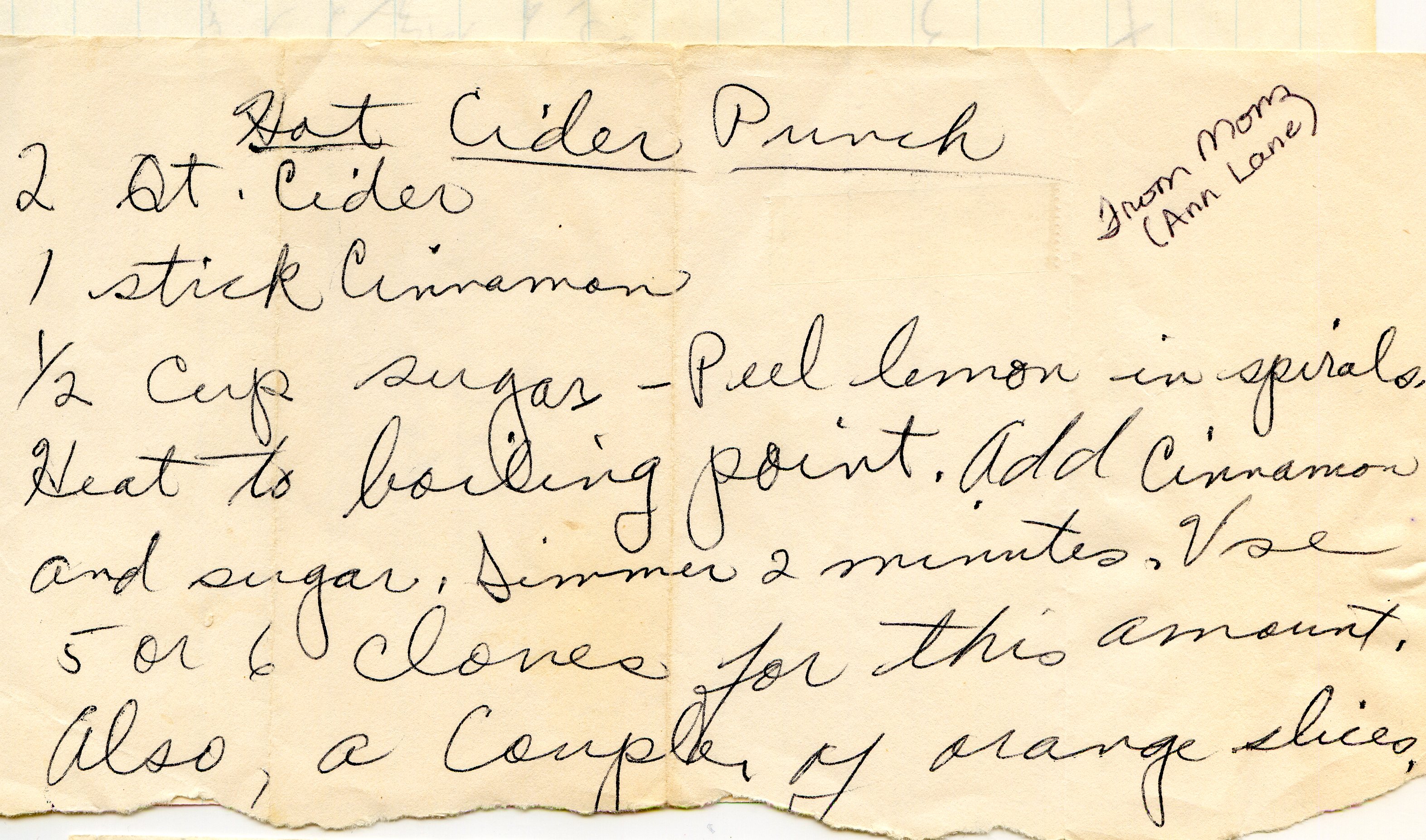 A warm spiced cider punch recipe from Mom (Ann Lane)
